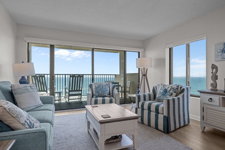 It depends on the layout and orientation. Many feature oceanfront-facing decks, living areas, and primary bedrooms. Check each listing’s photos.